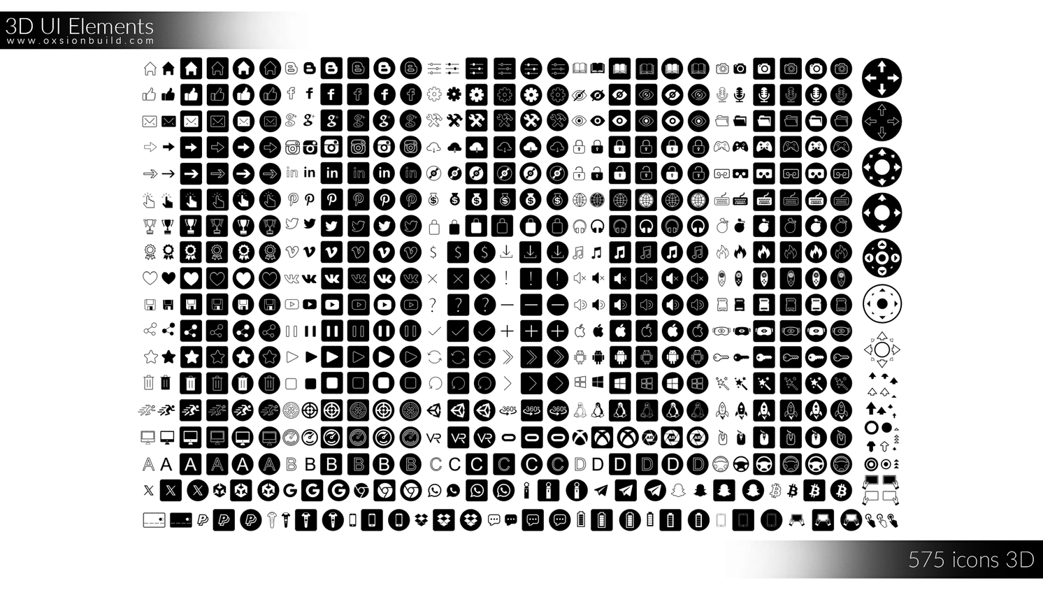 - The full 3D package elements of the interface. Includes a alphabetical, general, joystick, os, purchase, social, VR, system and more. The full set of icons is shown in the screenshot.